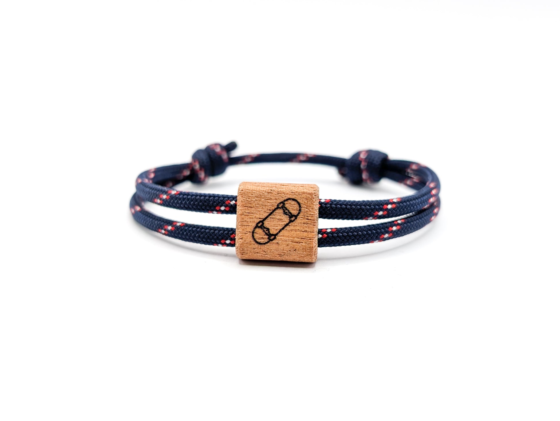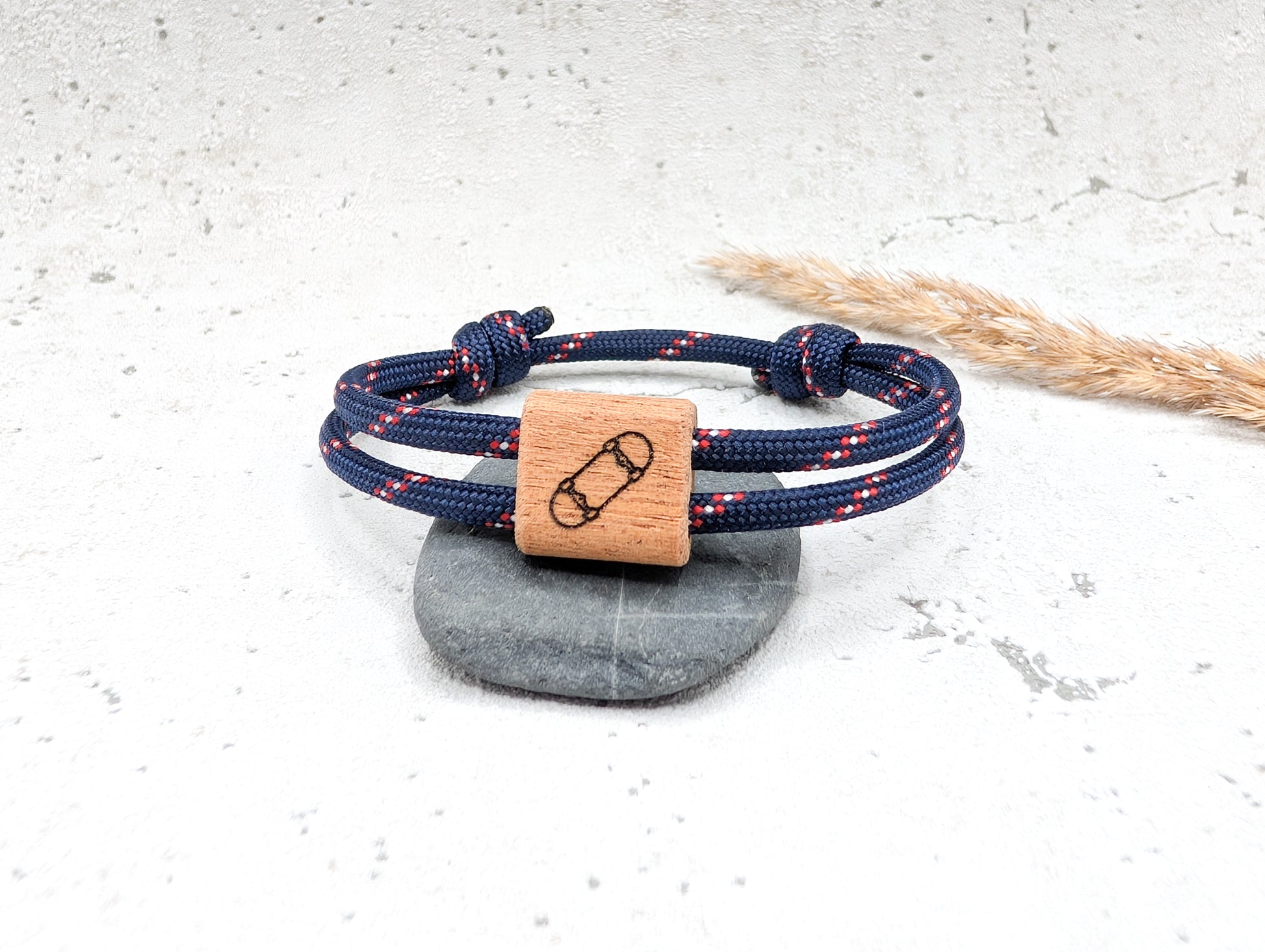 Dieses hochwertige Segeltau-Armband mit graviertem Holzdetail vereint natürliche Eleganz und individuellen Stil. Wähle aus einer Vielzahl von Symbolen und Armbandfarben, um dein persönliches Accessoire zu gestalten. Robust und stilvoll – ein einzigartiger, täglicher Begleiter, der deine Persönlichkeit perfekt widerspiegelt.